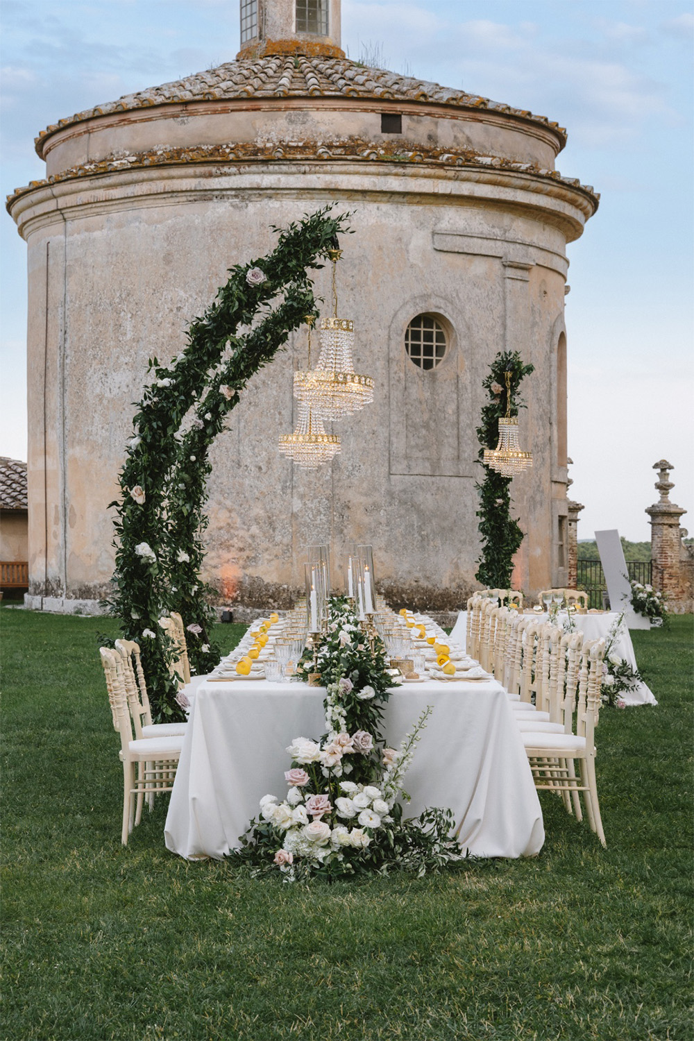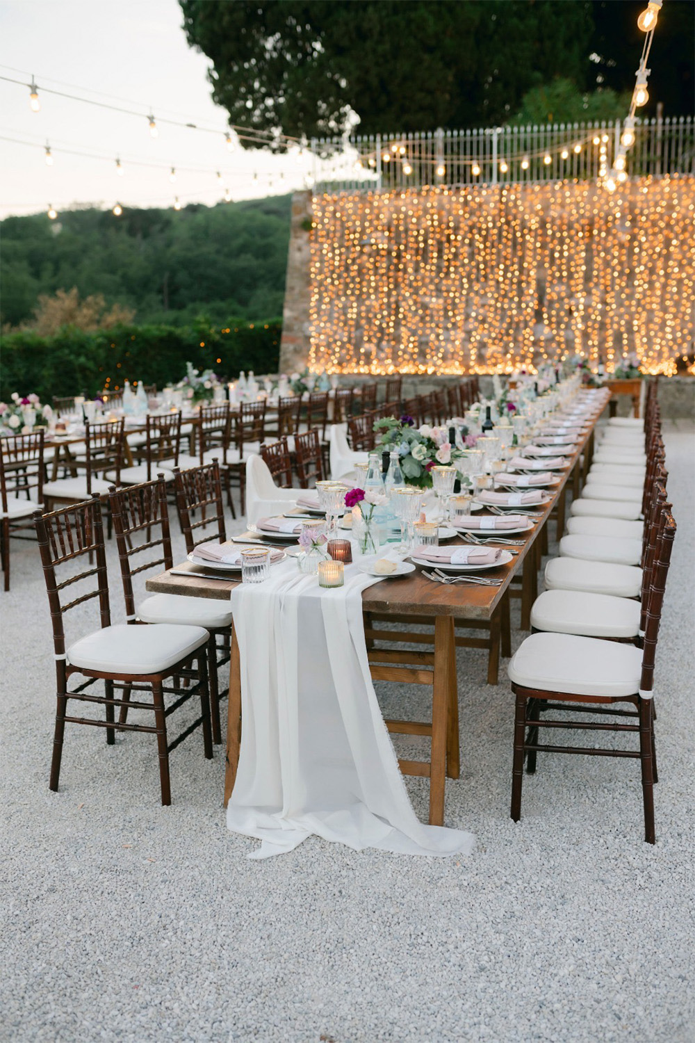 Amiamo le tavolate immerse nel verde, i centrotavola che sembrano respirare, i dettagli discreti che uniscono stile e naturalezza.