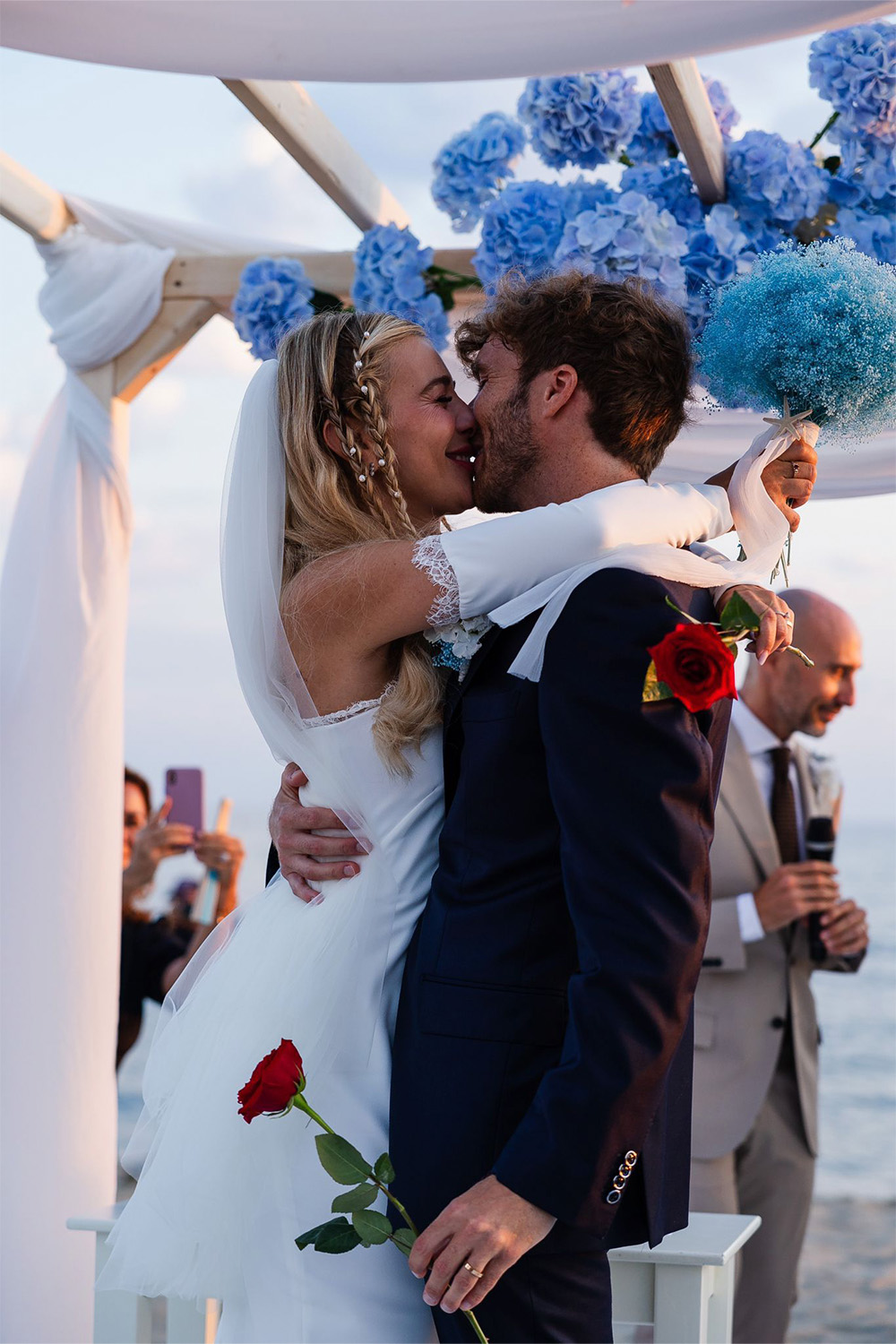 E in quell’attimo i fiori diventano il respiro della scena: discreti, eleganti, pieni di significato.