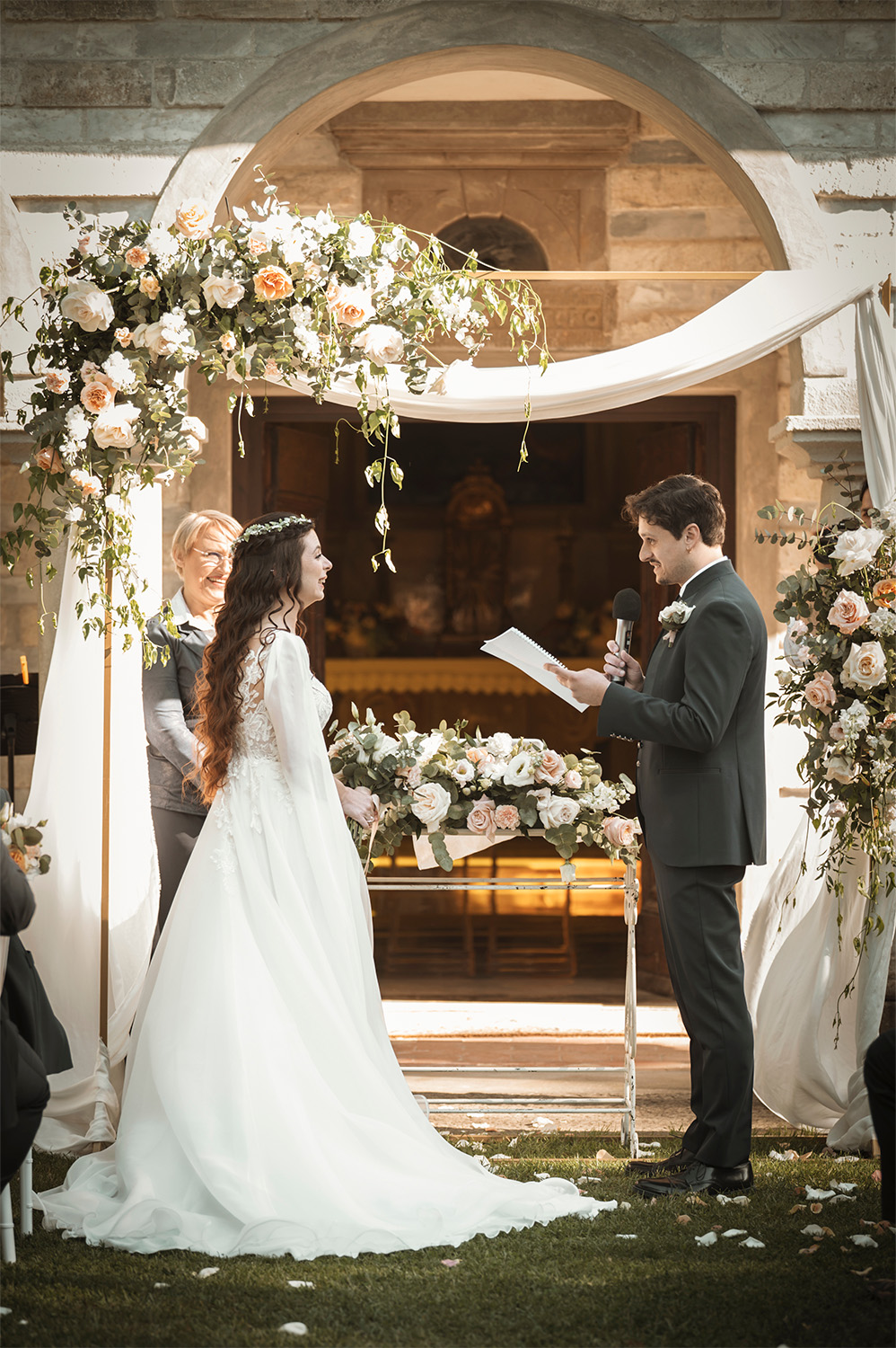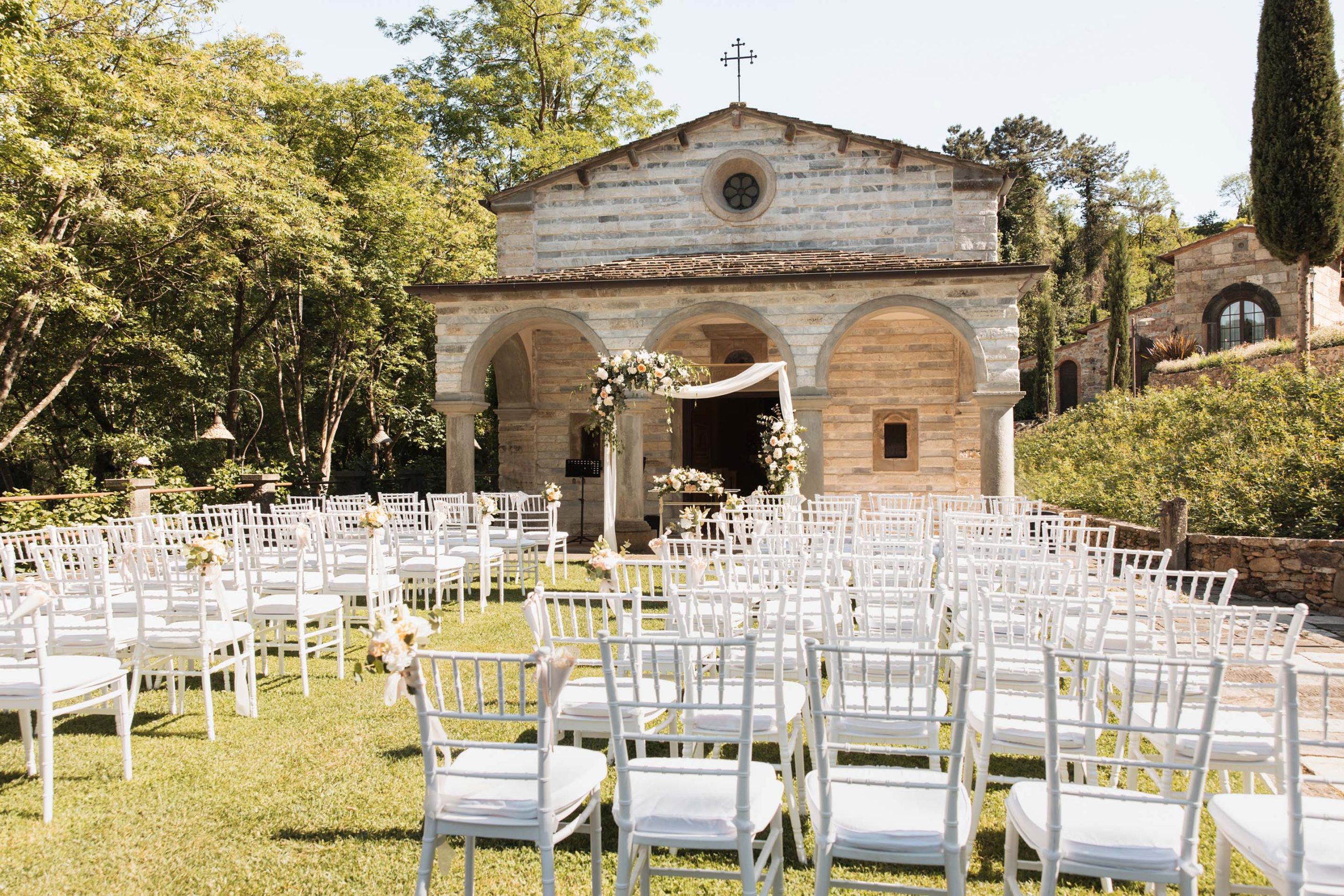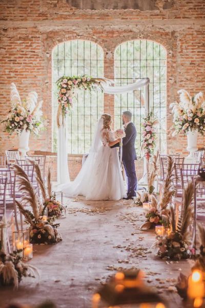 Archi floreali, altari, panche, petali e dettagli che accolgono le promesse più importanti.